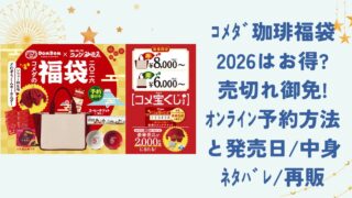 コメダ珈琲福袋2026はお得?売切れ御免!オンライン予約方法と発売日/中身ネタバレ/再販
